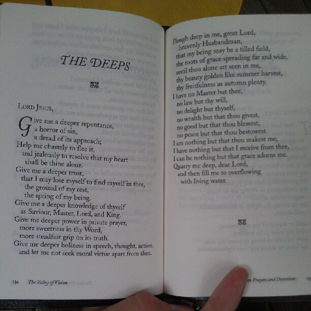 don’t know if you can zoom in and read this, but if you can, you should. Good stuff from “The Valley of Vision: Puritan Prayers and Devotions” (Taken with Instagram)