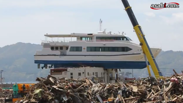 When the water receded from the recent Japanese Tsunami, amazingly, this boat came to balance on top of a house. Click the image to read the story and watch a video of it’s removal.